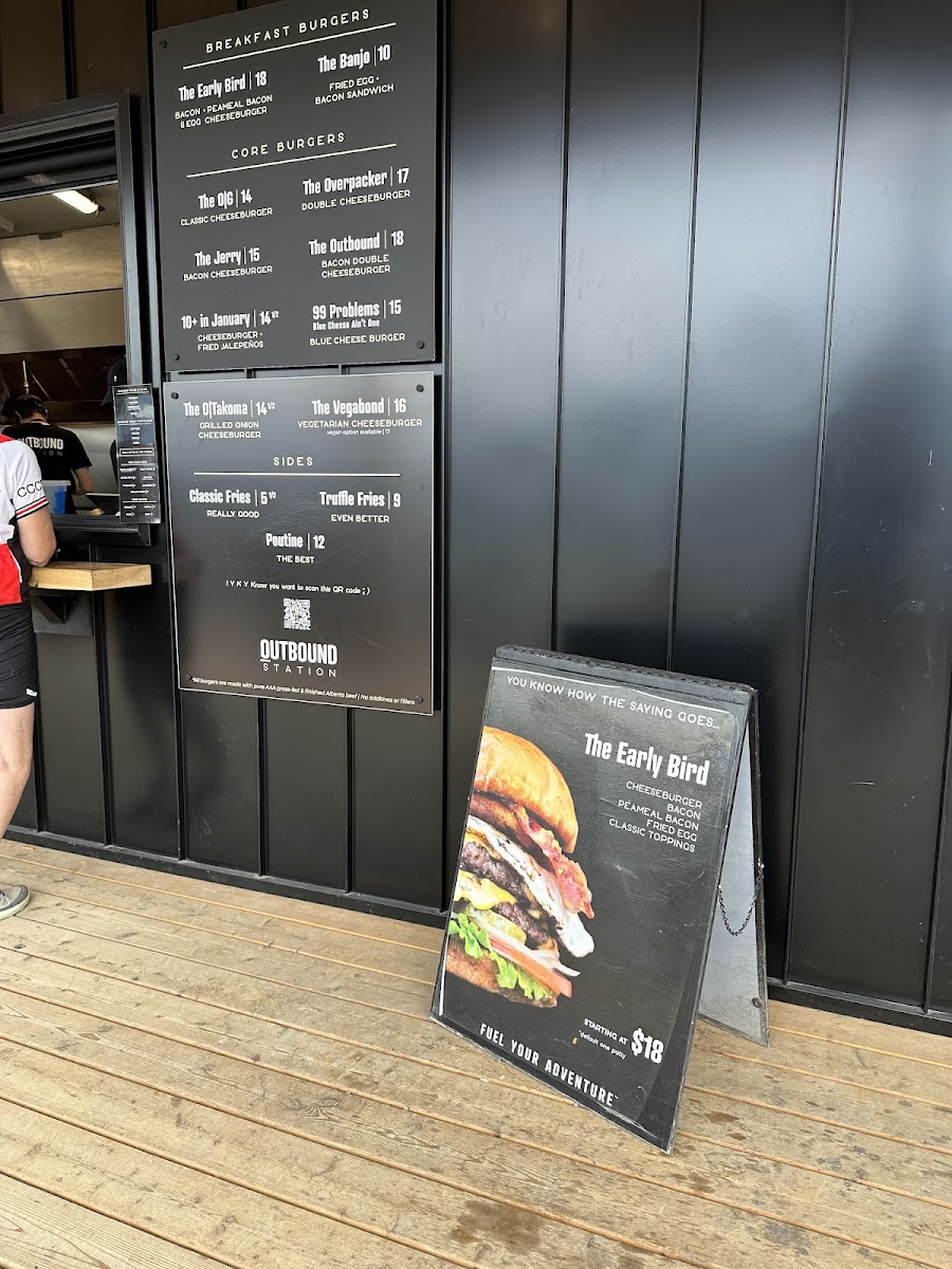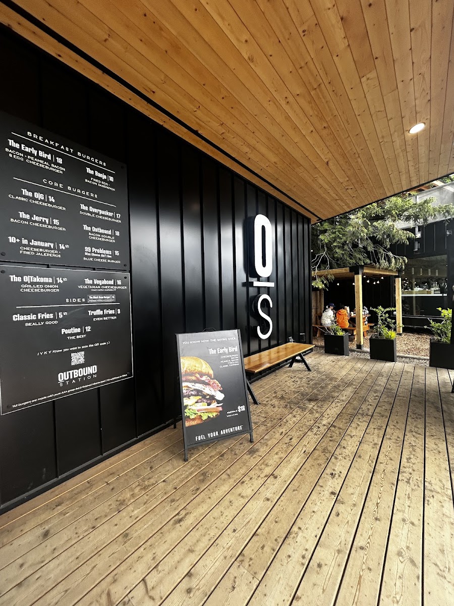 Welcome to OUTBOUND STATION - OS, a hidden gem located along the stunning Sea-to-Sky Highway in Britannia Beach, BC. This culinary stop brings a delightful fusion of flavors, perfect for any traveler. Between the hours of 9 AM to 8 PM, indulge in their mouthwatering burger menu. Options range from classic bacon cheeseburgers to the satisfying "early bird" with juicy grilled onions. Pair your meal with their renowned truffle fries or tasty drinks like the Shaken Oat Espresso, a favorite among patrons.